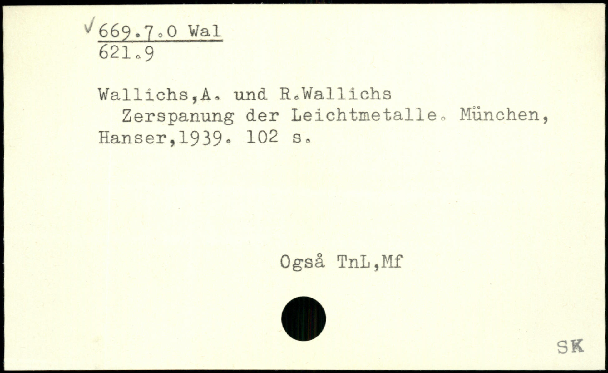 Zerspanung der Leichtmetalle , München, Hanser,1939- 102 s. Også TnL,Mf