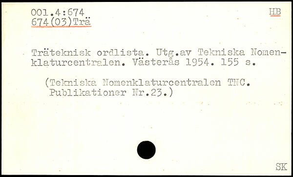 Träteknisk ordlista. Ut".av Tekniska Nomenklaturcentralen. Västerås 1954.