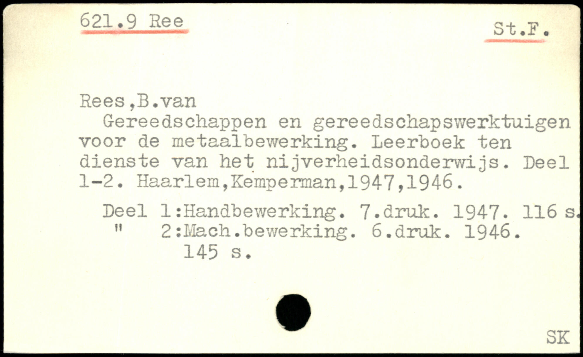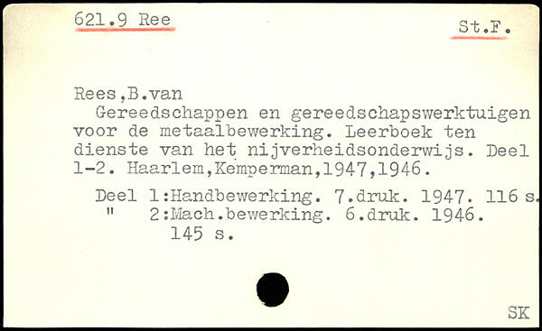 Gereedschappen en gereedschapswerktuigen voor de metaalbewerking. Leerboek ten dienste van het nijverheidsonderwijs. Deel 1-2.