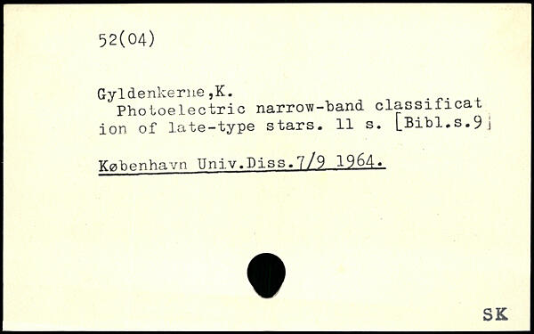 Photoelectric narrow-hand classif ica t. ion of late—type stars.