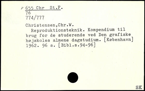 Christensen,Chr. W. Reproduktionsteknik. Kompendium til brug for de studerende ved Den grafiske højskoles almene dagstudium.