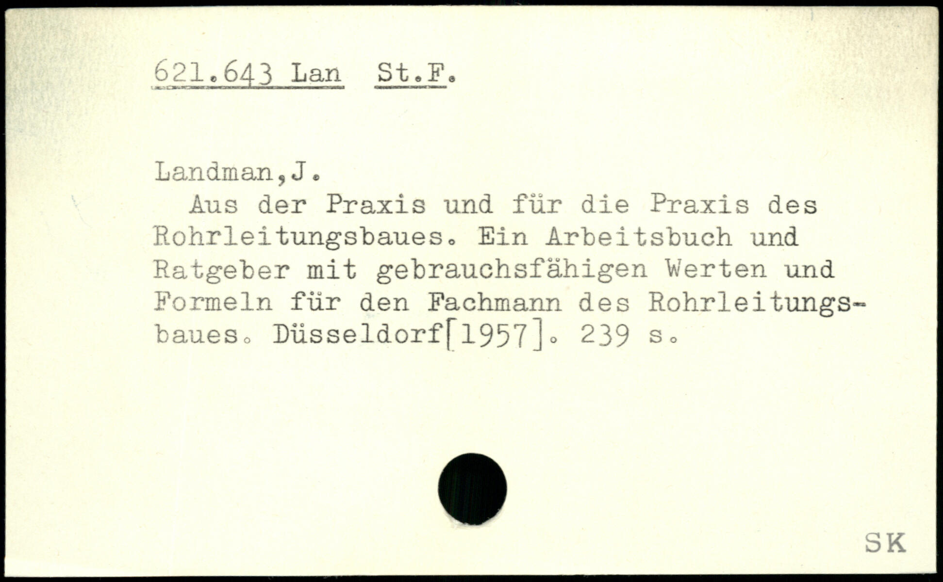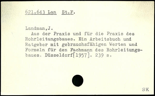 Aus der Praxis und für die Praxis des Rohrleitungsbaues, Ein Arbeitsbuch und Ratgeber mit gebrauchsfähigen Werten und Formeln für den Fachmann des Rohrleitungsbaues, Düsseldorf[1957].