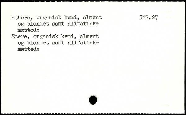 Ethere, organisk kemi, alment 547. 27 og ‘blandet samt alifatiske mættede Ætere, organisk kemi, alment og "blandet samt alifatiske mættede