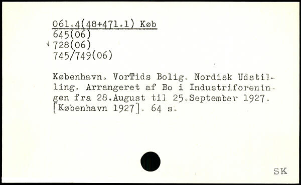København. VorTids Bolig, Nordisk Udst1111ng. Arrangeret af Bo i Industriforeningen fra 28.August til 25,September 1927-f