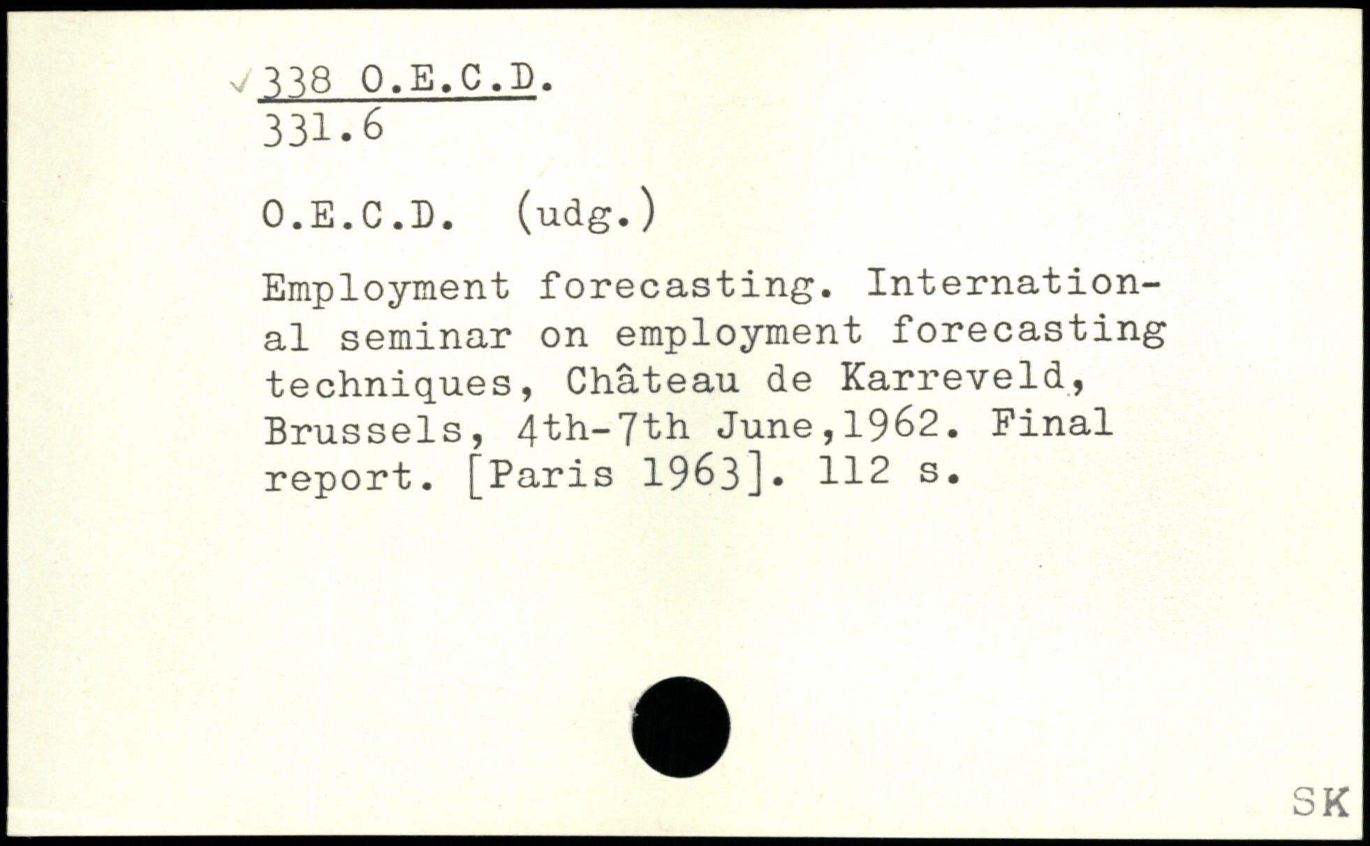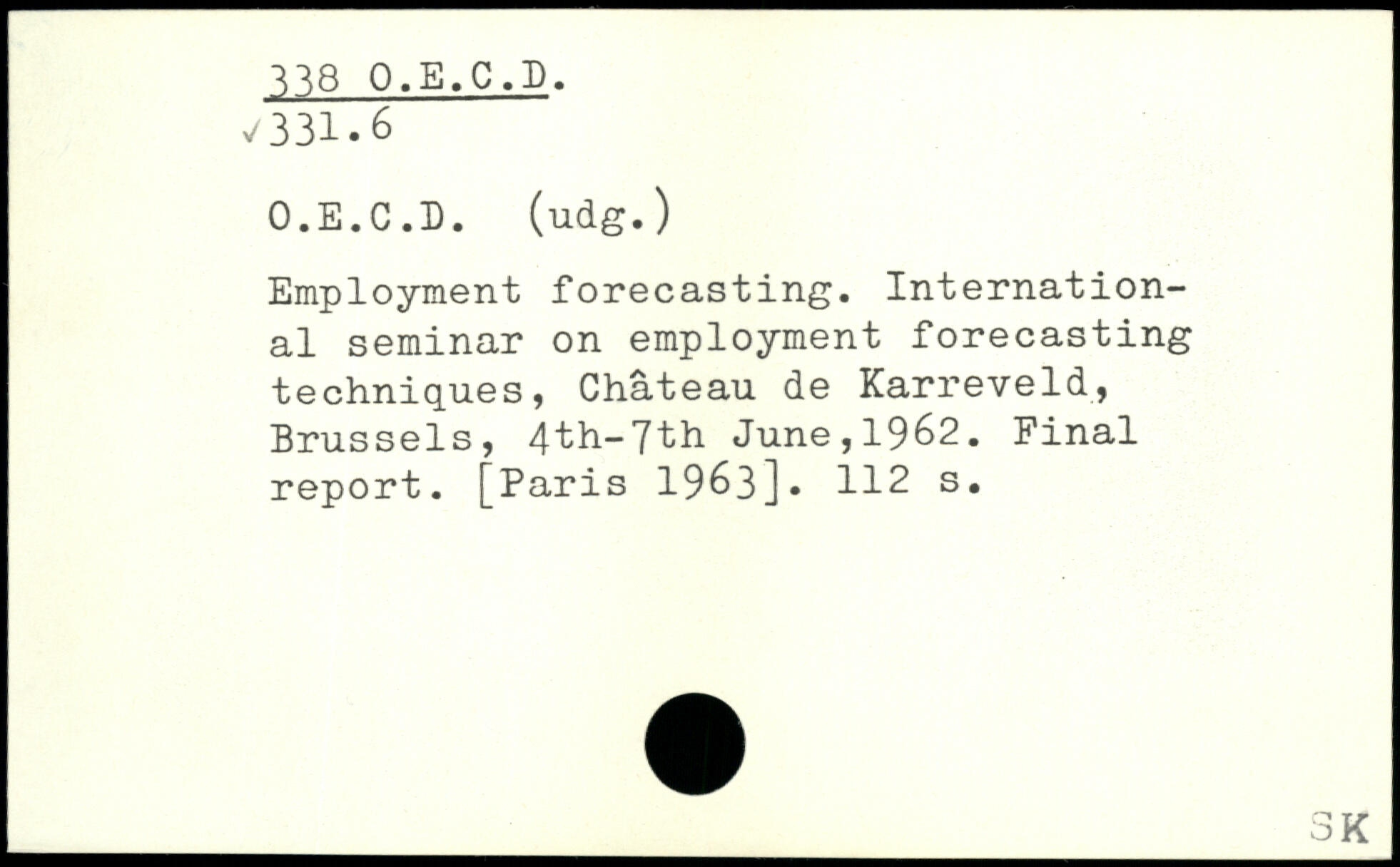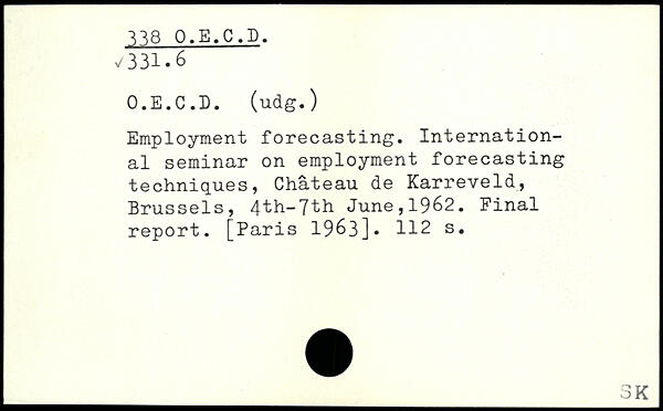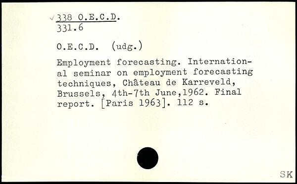 Employment forecasting. International seminar on employment forecasting techniques, Chateau de Karreveld, Brussels, 4th-7th June,1962. Final report.