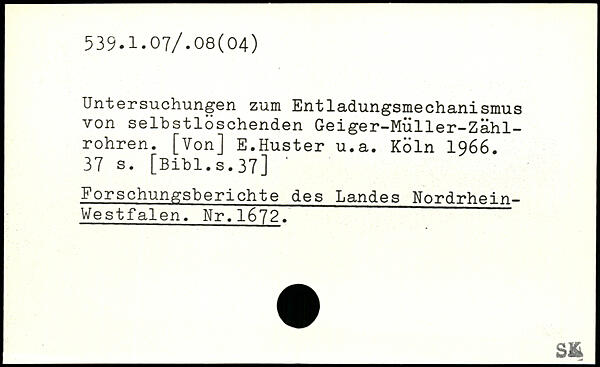 Untersuchungen zum Entladungsmechanismus von selbstlöschenden Geiger-Müller-Zähl-rohren. [Von] E.Huster u.a.