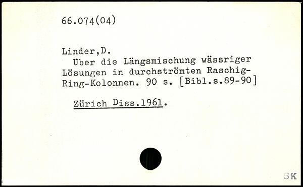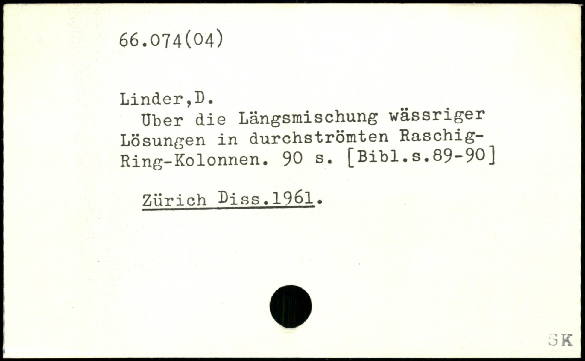Uber die Längsmischung wässriger Lösungen in durchströmten Raschig-Ring-Kolonnen.
