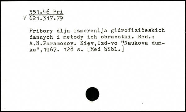 Pribory dija izmerenija gidrofizifceskich dannych i metody ich obrabotki. Red.: A.N.Paramonov. Kiev,Izd-vo "Naukova dum-ka",1967.
