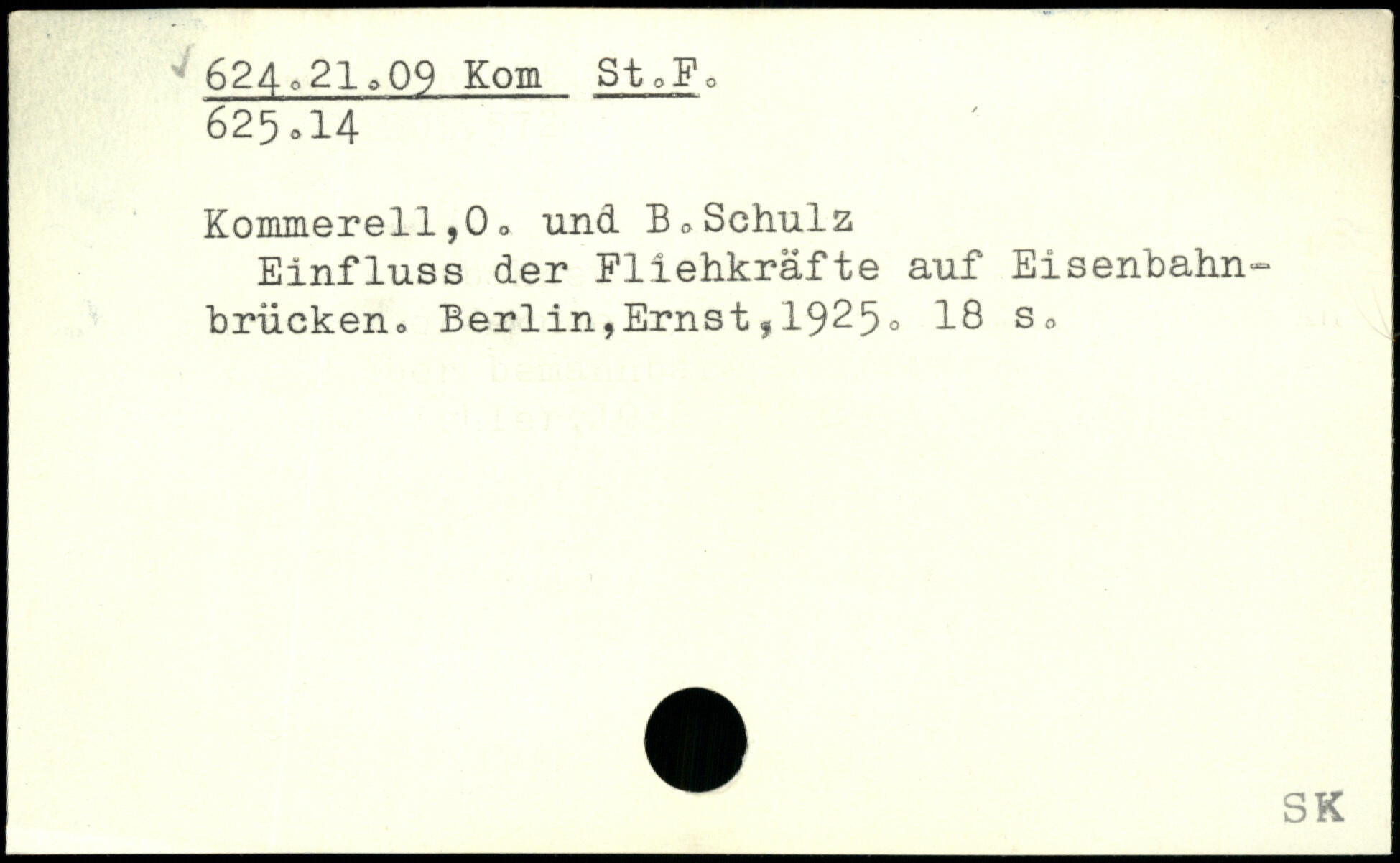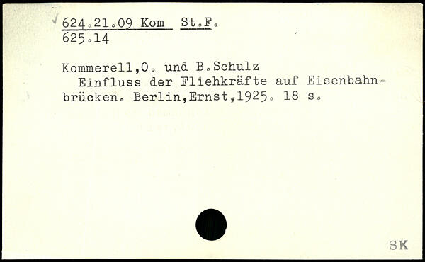 Kommerell,0o und B,Schulz Einfluss der Fliehkräfte auf Eisenbahn-brücken, Berlin,Ernst,19^5. 18