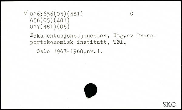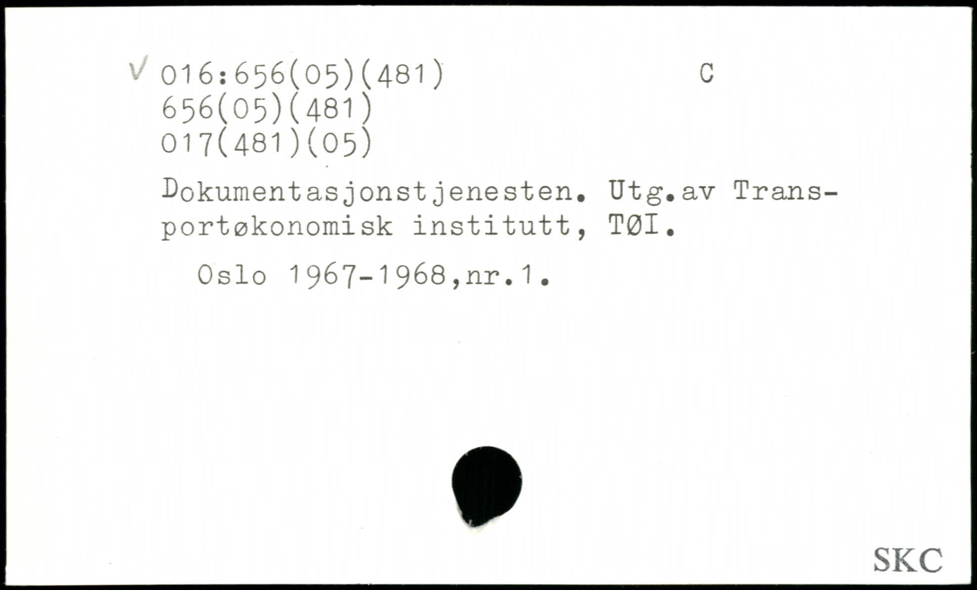 Dokument asjonstjenesten. Utg.av Transportøkonomisk institutt, TØI. Oslo 1967-1968,nr.1.