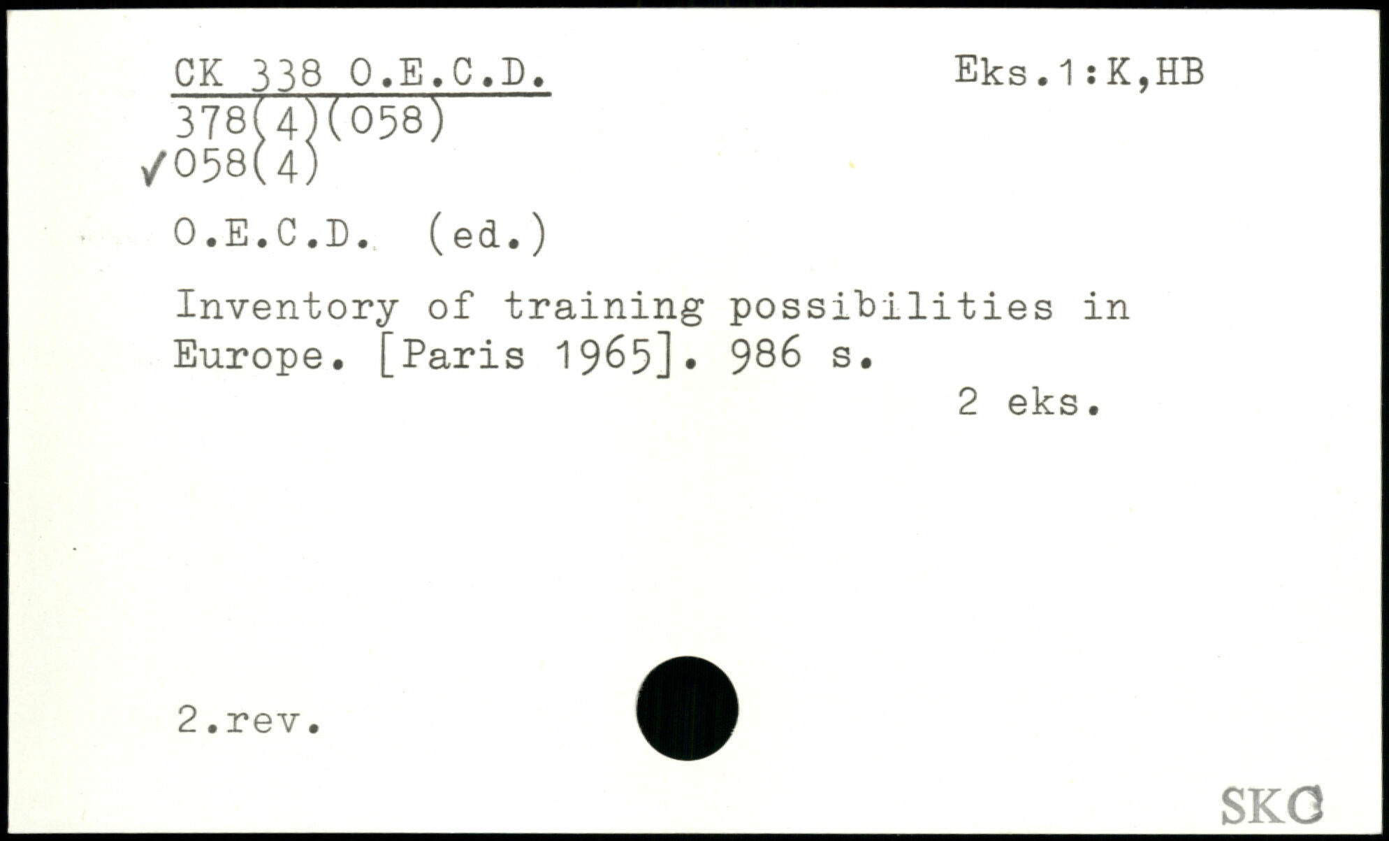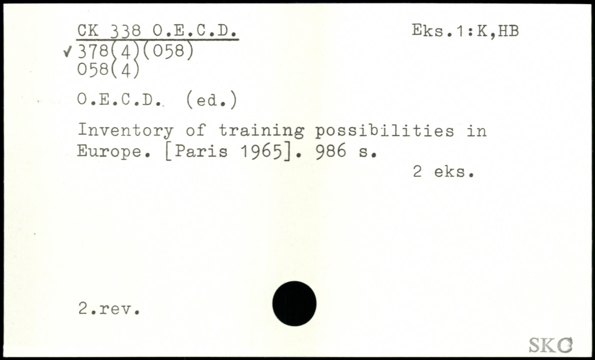 Inventory of training possibilities in Europe.