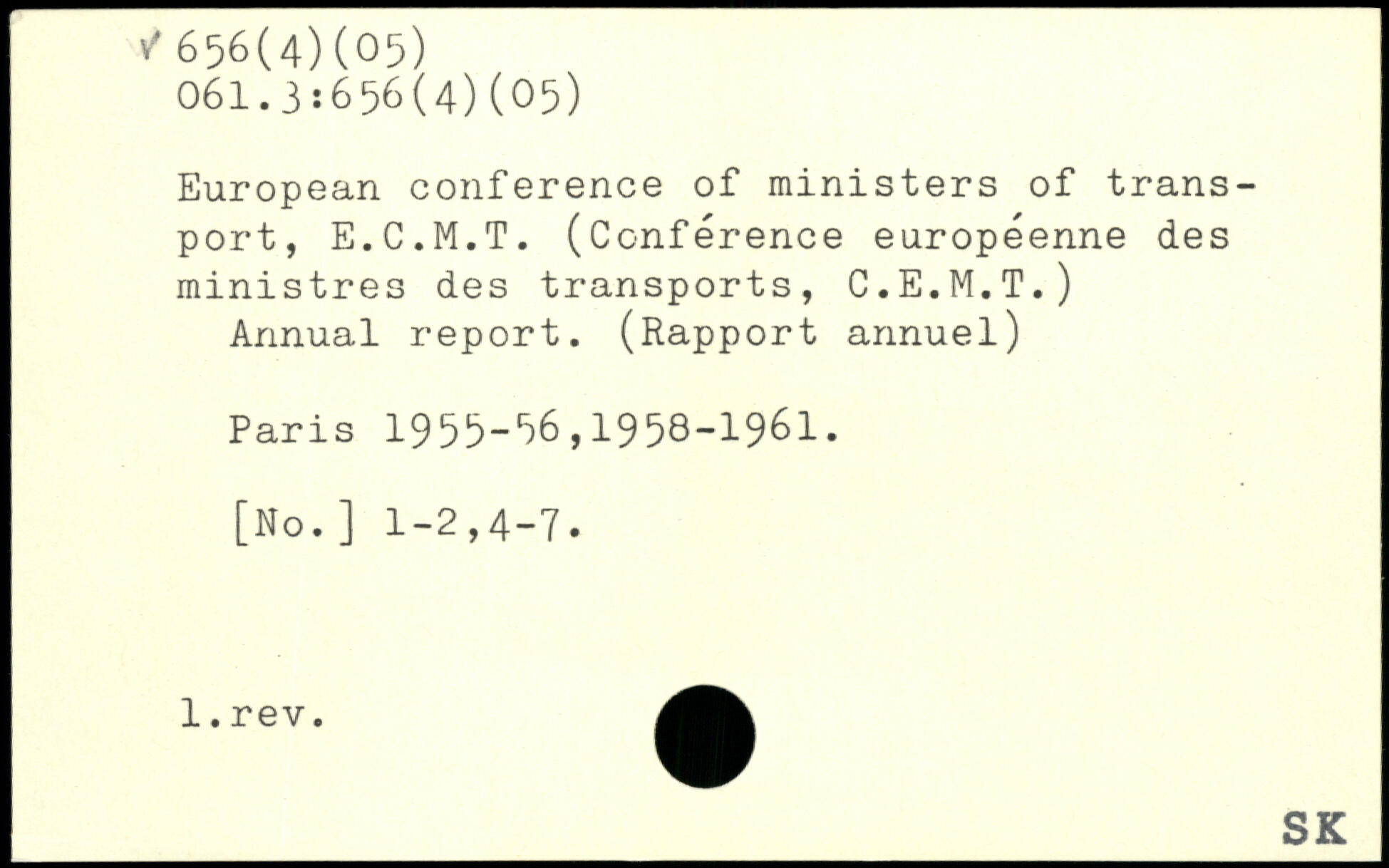 European conférence of rainisters of transport, E.C.M.T. (Conférence européenne des ministres des transports, C.E.M.T.) Annual report. (Rapport annuel)