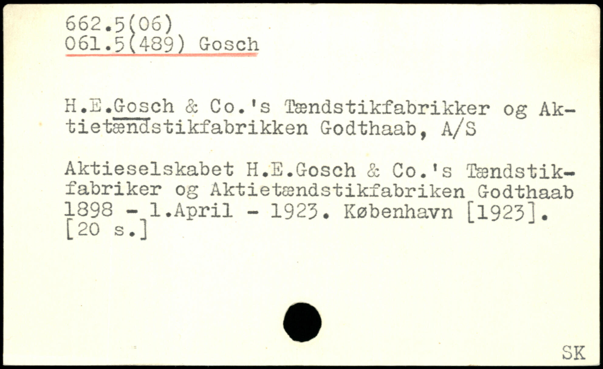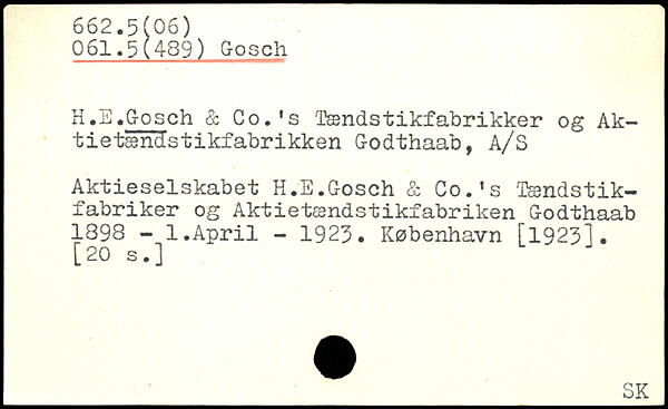 H.E.Gosch & Co.'s Tændstikfabrikker og Aktie tæncls tikf abrikken G-odthaab, A/S Aktieselskabet H.E.Gosch & Co.'s Tændstikfabriker og Aktietændstikfabriken Godthaab 1898 - 1.April - 1925#