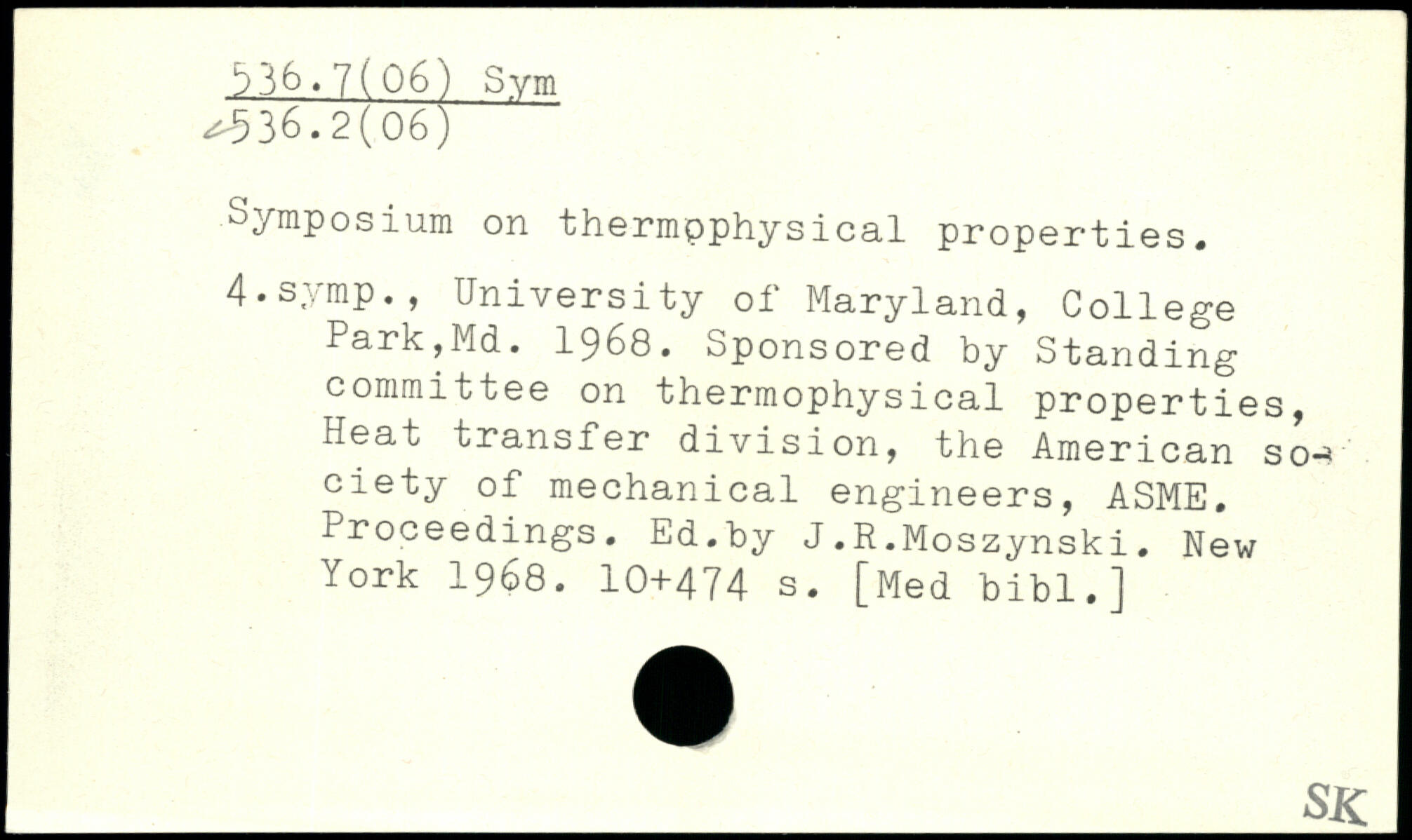 Symposium on thermpphysical properties. 4.symp., University of Maryland, College Park,Md. 1968. Sponsored by Standing committee on thermophysical properties Heat transfer division, the American so-> ciety of mechanical engineers, ASME. Proceedings. Ed.by J.R.Moszynski.