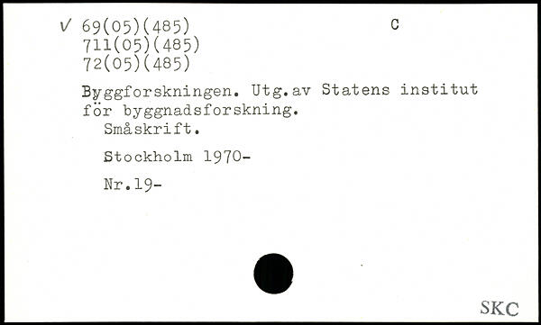 Byggforskningen. Utg.av Statens institut for byggnadsforskning. Småskrift.