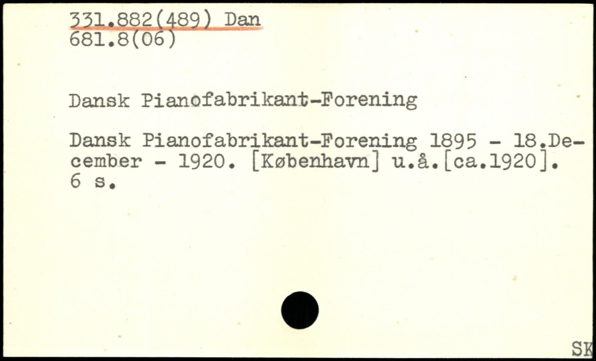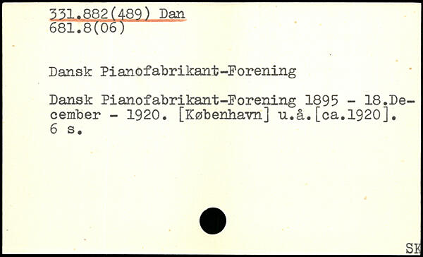 Dansk Pianofabrikant-Porening Dansk Pianofabrikant-Porening 1895 - 18.December - 1920. [København] u.å.[ca.1920].