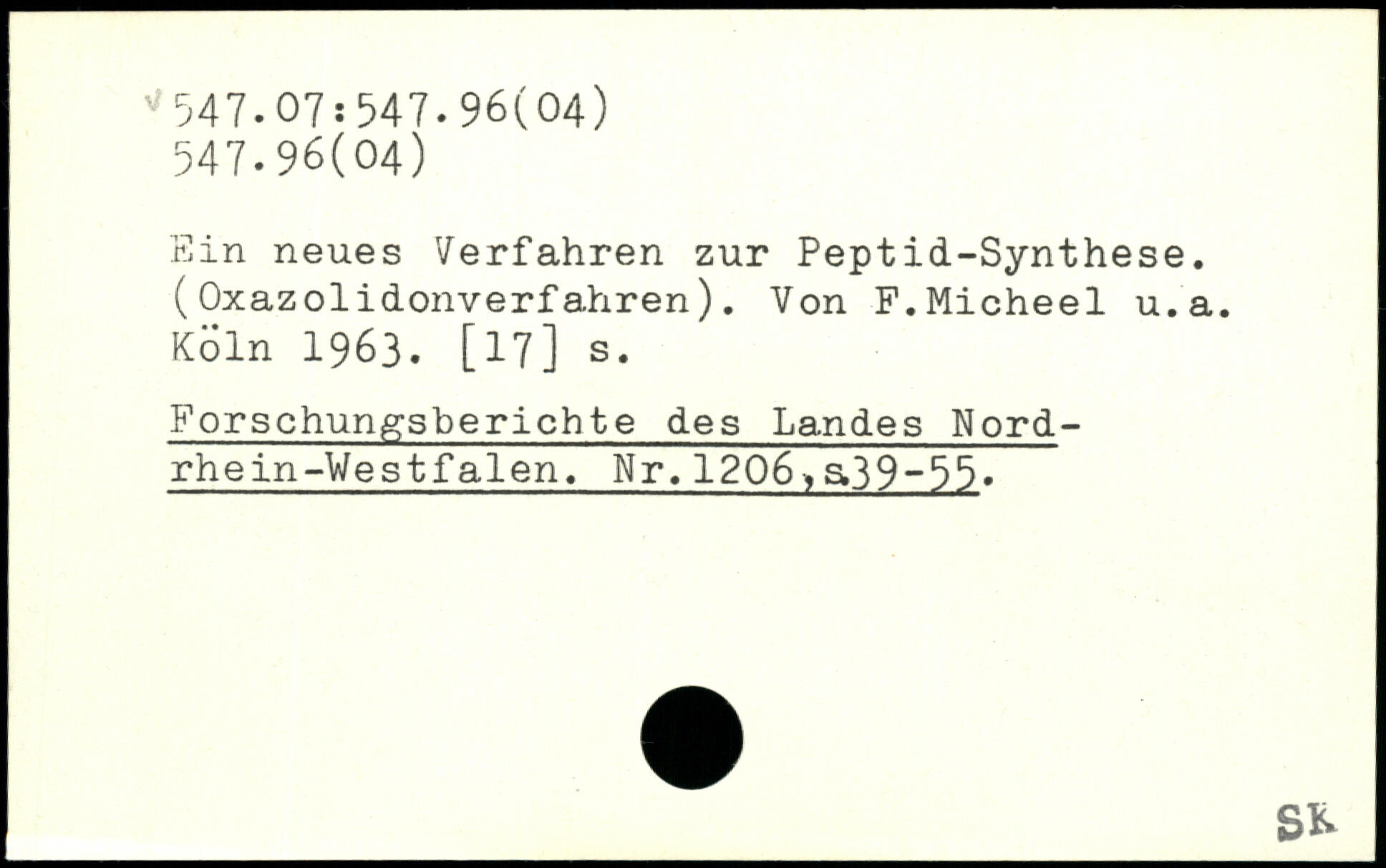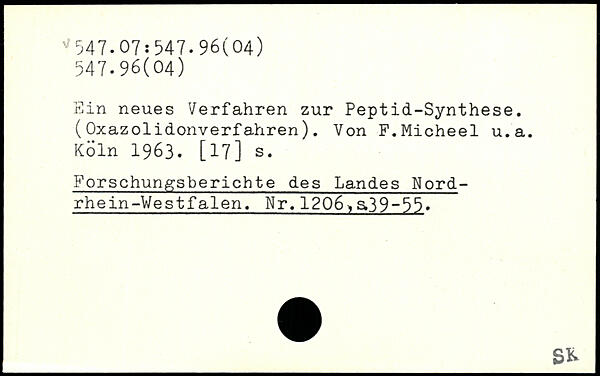 Ein neues Verfahren zur Peptid-Synthese. (Oxazolidonverfahren). Von F.Micheel u.a.