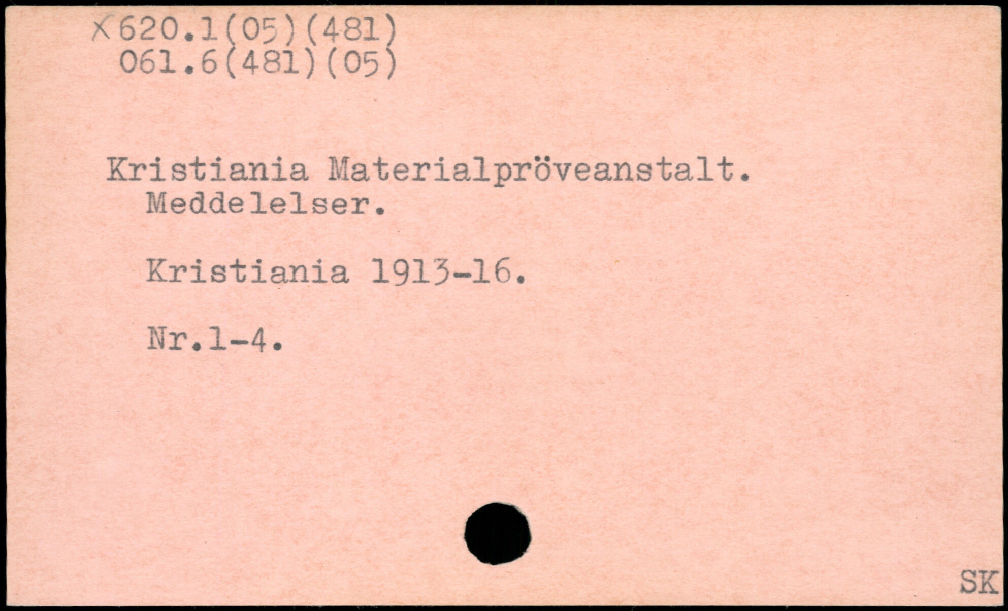 Kristiania Materialpröveanstalt. Meddelelser. Kristiania 1913-16. Nr.1-4. _ SK