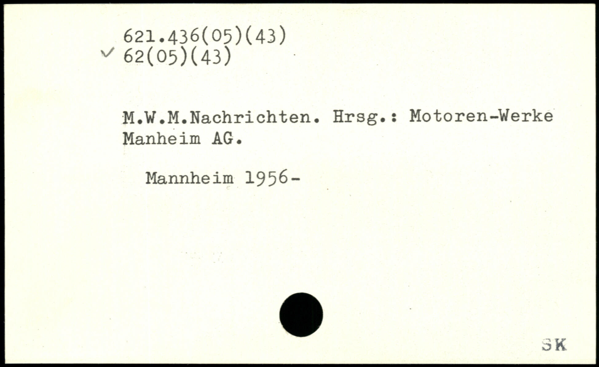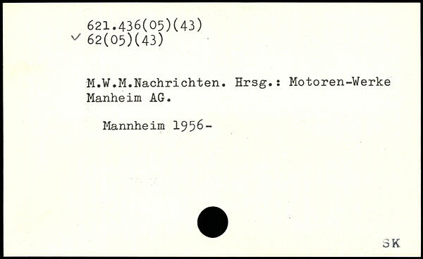 M.W.M.Nachrichten. Hrsg.: Motoren-Verke Manheim AG. Mannheim 1956- 3 K