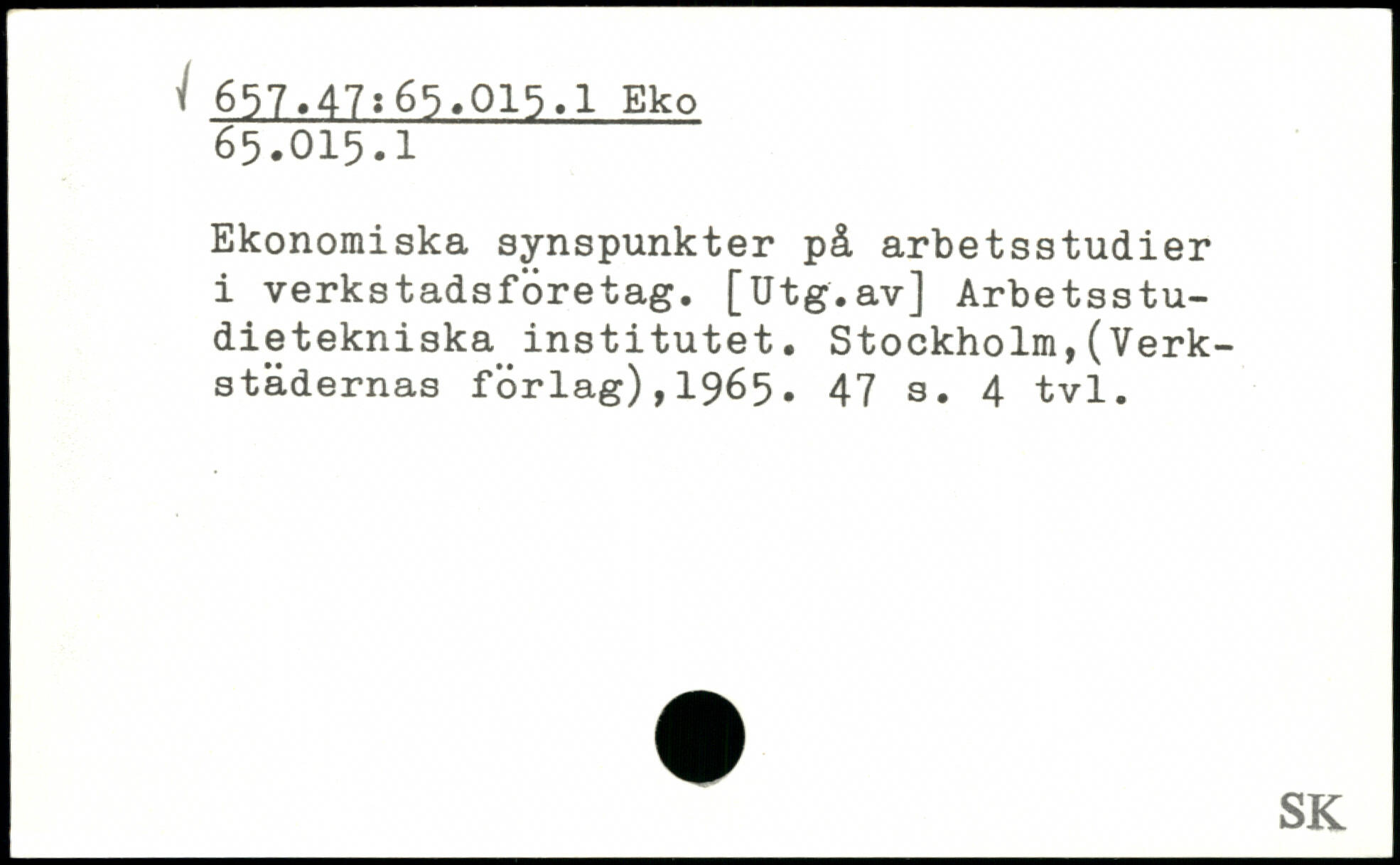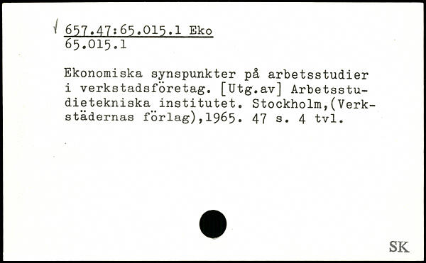 Ekonomiska synspunkter på arbetsstudier i verkstadsföretag. [Utg.av] Arbetsstu-dietekniska institutet. Stockholm,(Verkstädernas forlag),1965.
