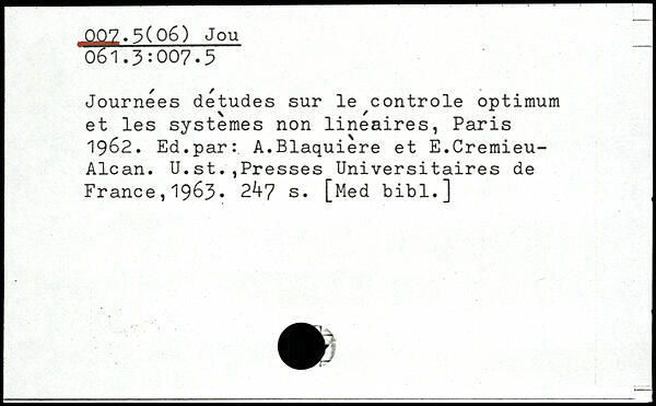 Journées détudes sur le contrôle optimum \ / et les systèmes non linéaires