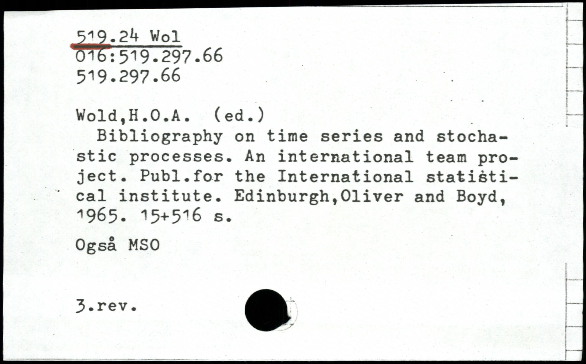 Bibliography on time series and stochastic processes. An international team project. Publ.for the International statistical institute.