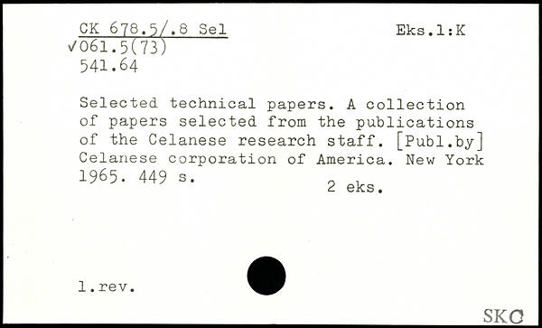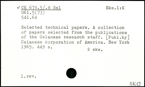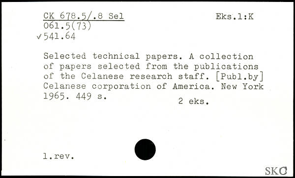 Selected technical papers. A collection of papers selected from the publications of the Celanese research staff.