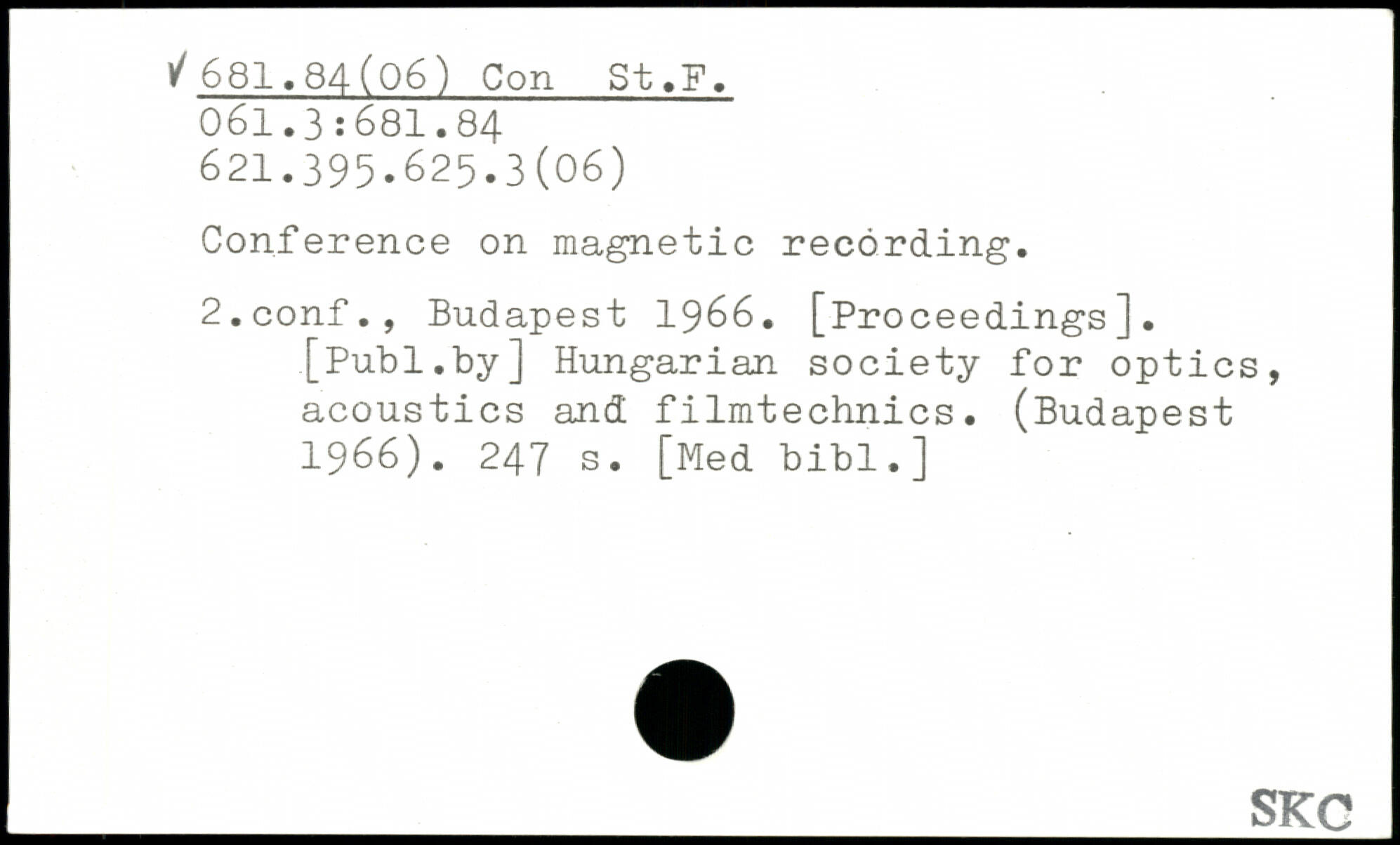 Conference on magnetic recording. 2.conf.