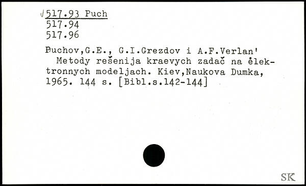 Buehov,G.E., G.I.Grezdov i A.F.Verlan. Metody resenija kraevych zadac na élek-tronnych modeljach.