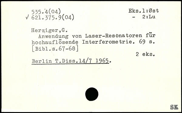 Anwendung von Laser-Resönatoren für hochauflösende Interferometrie.