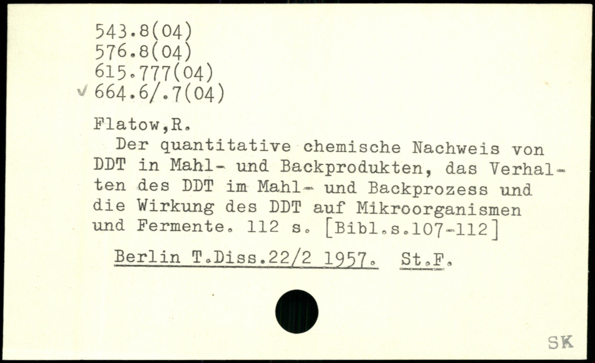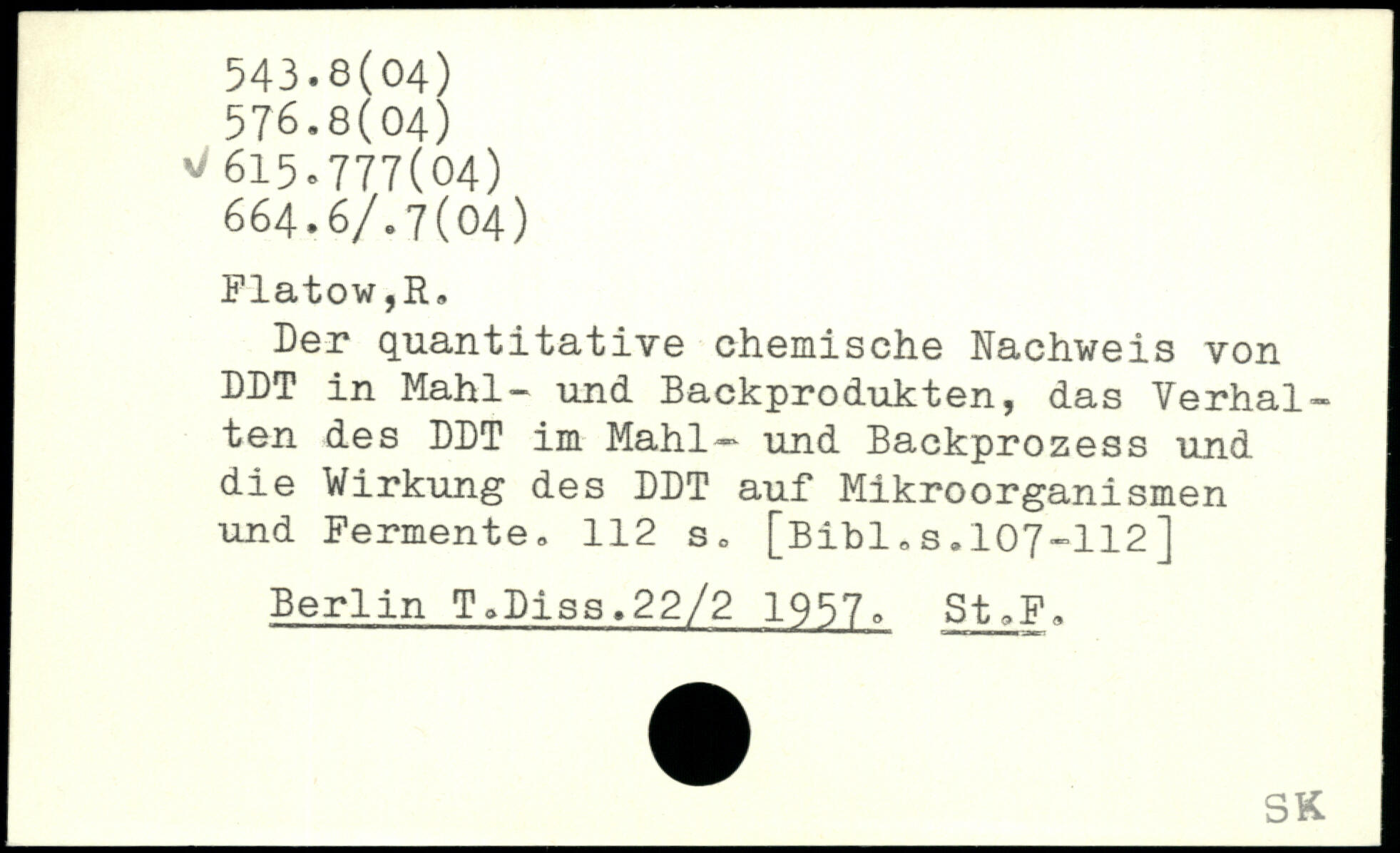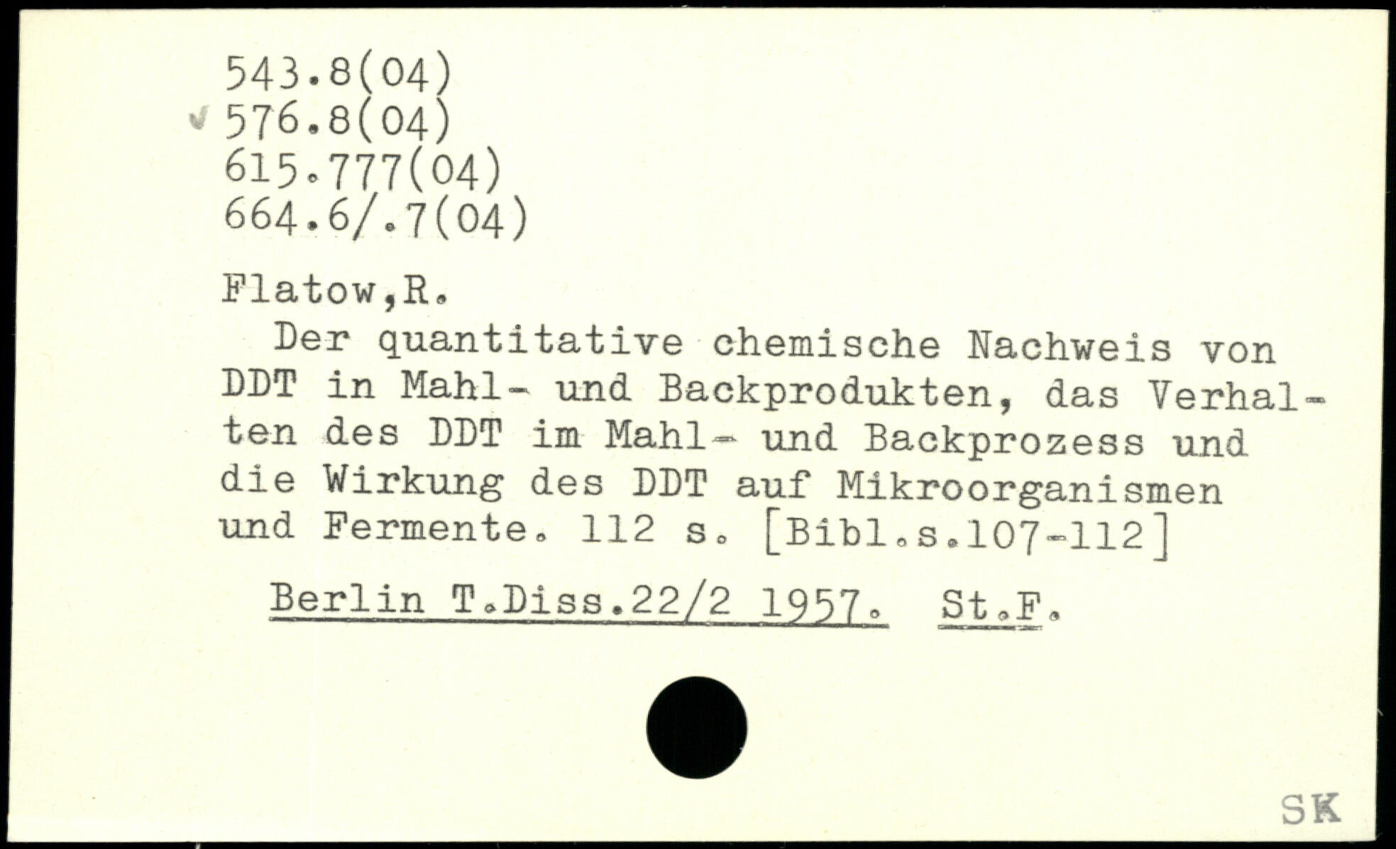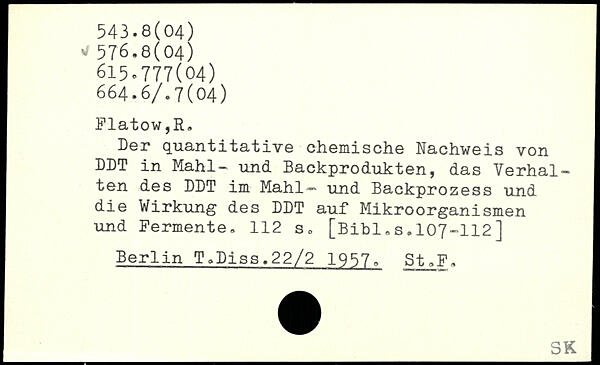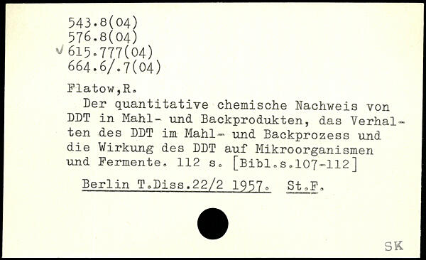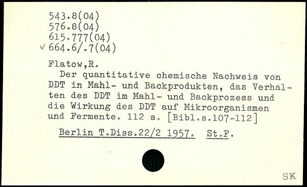 Der quantitative chemische Nachweis von DDT in Mahl- und Backprodukten, das Verhalten des DDT im Mahl— und Backprozess und die Wirkung des DDT auf Mikroorganismen und Fermente