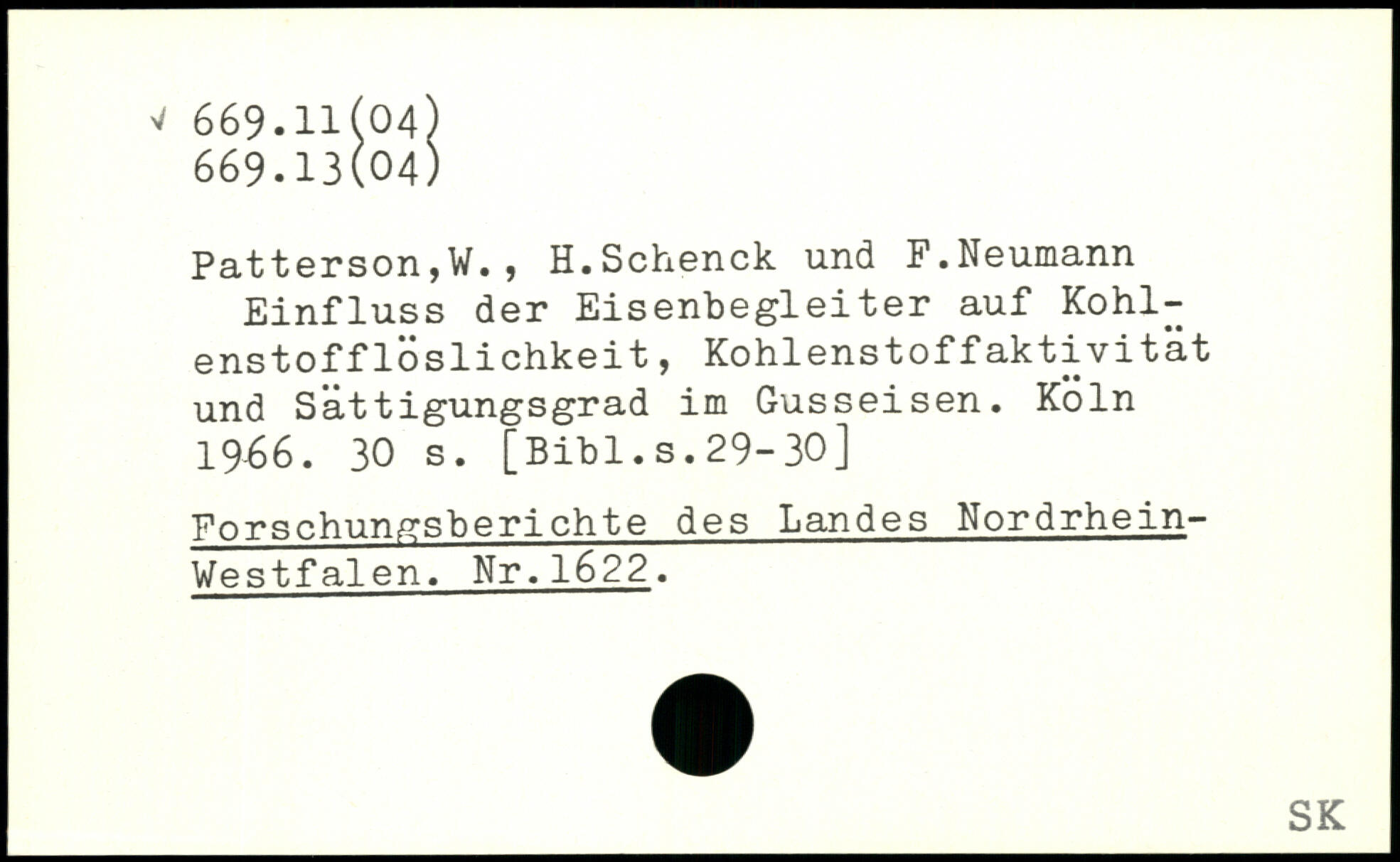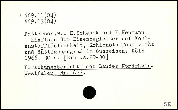 Patterson,W., H.Schenck und F.Neumann Einfluss der Eisenbegleiter auf Kohlenstof flöslichkeit , Kohlenstoffaktivität und Sättigungsgrad im Gusseisen. Köln 19-66.