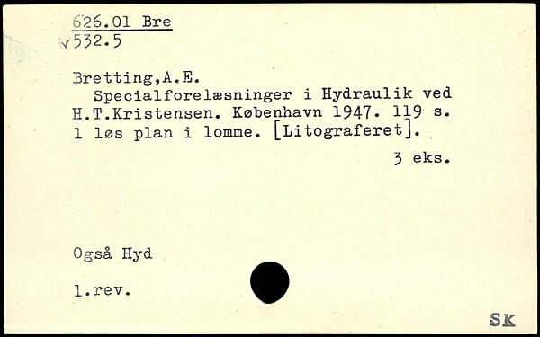 Specialforelæsninger i Hydraulik ved H.T.Kristensen.