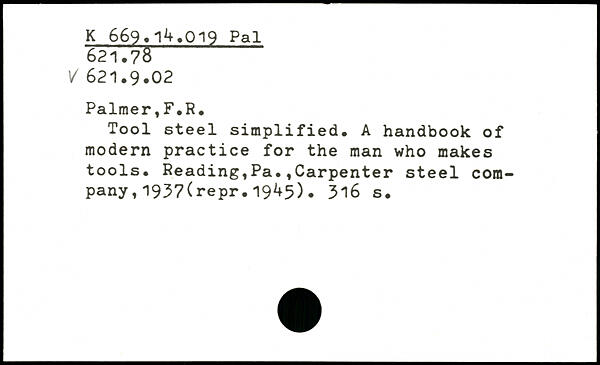 Tool steel simplified, A handbook of modern practice for the man who makes tools