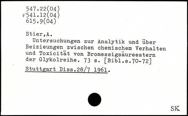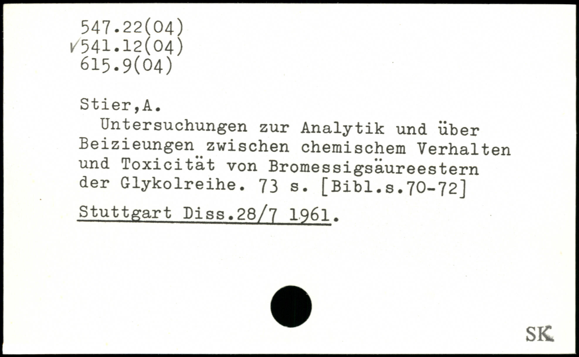 Untersuchungen zur Analytik und über Beizieungen^zwischen chemischem Verhalten und Toxicität von Bromessigsaureestern der Glykolreihe.