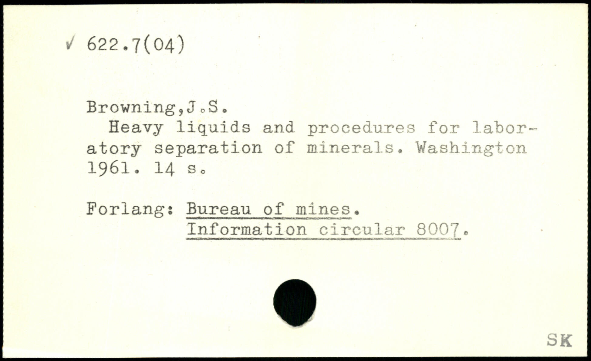 Browning,J cS. Heavy liquids and procedures for laboratory separation of minerals.
