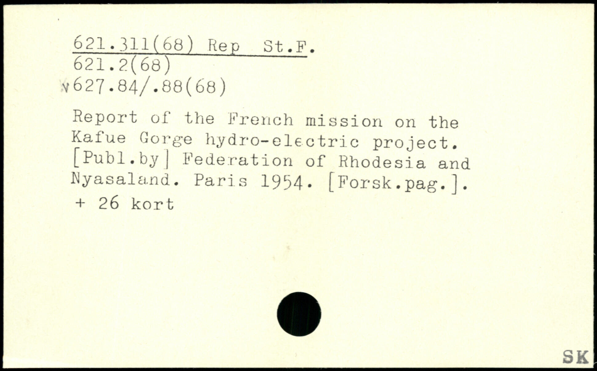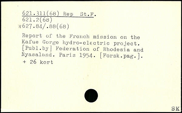 Report of the French mission on the Kafue Gorge hydro-electric project.