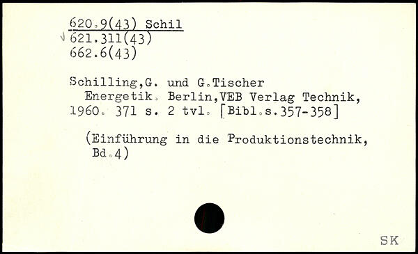 Energetik, Berlin,YEB Verlag Technik, 1960. 371 S. 2 tvl. fBibl.s.357-358] (Einführung in die Produktionstechnik