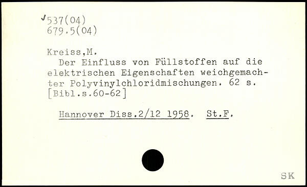 Der Einfluss von Füllstoffen auf die elektrischen Eigenschaften weichgemach-ter Polyvinylchloridmischungen.