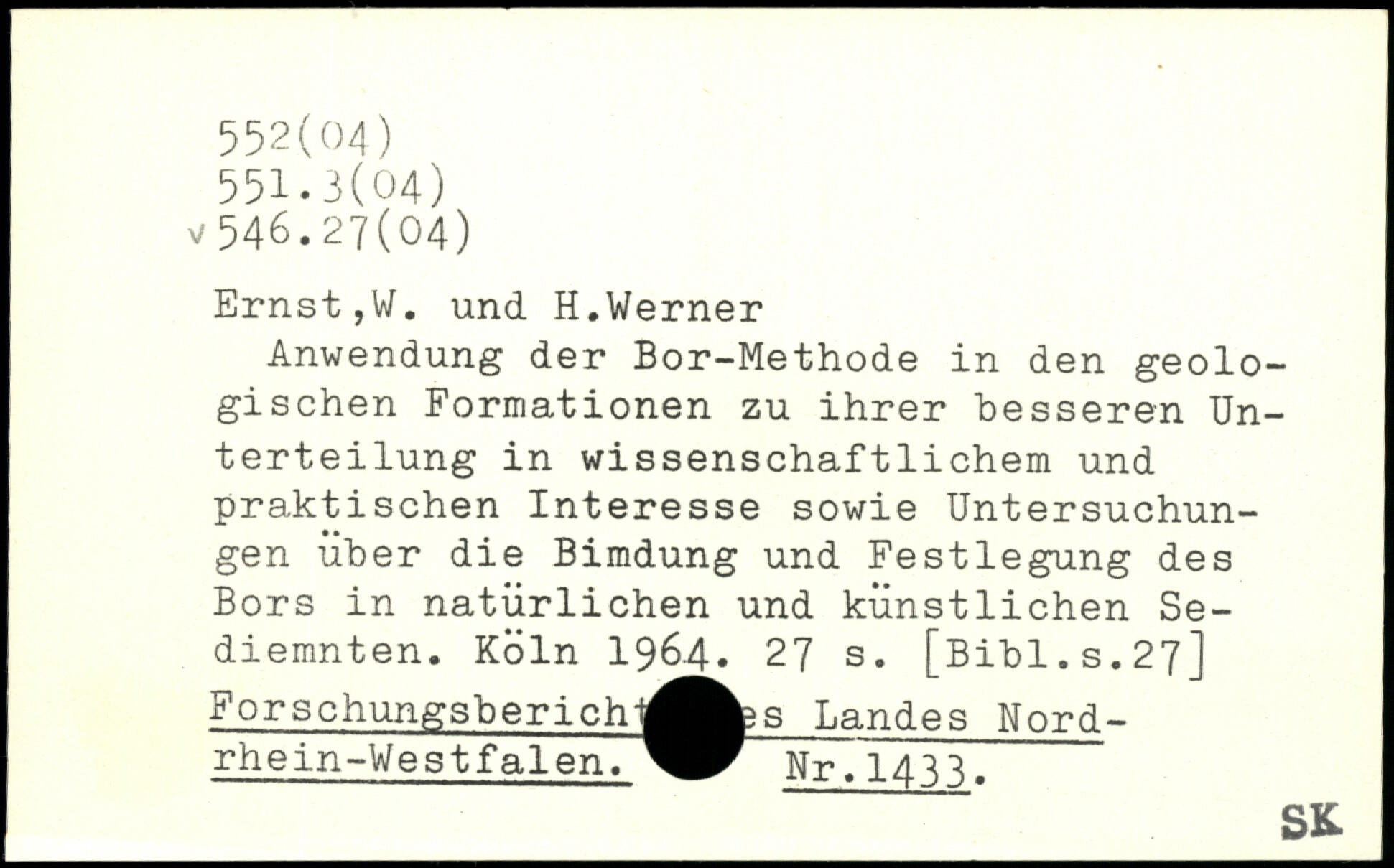 Anwendung der Bor-Methode in den geologischen Formationen zu ihrer besseren Unterteilung in wissenschaftlichem und praktischen Interesse sowie Untersuchungen über die Bimdung und Festlegung des Bors in natürlichen und künstlichen Se-diemnten.