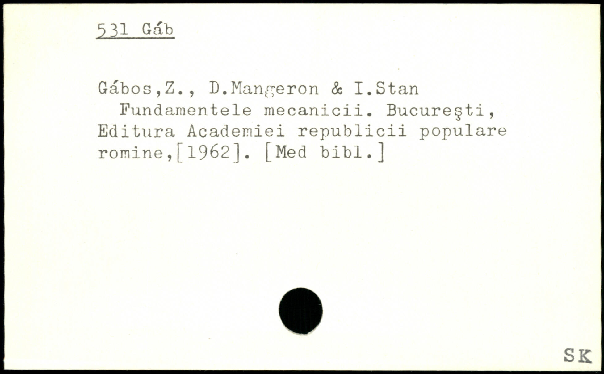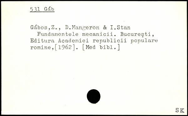 Fundamentele mecanicii. Bucure§tl, Editura Academiei republicii populare romine,[1962]. [Med bibl.]