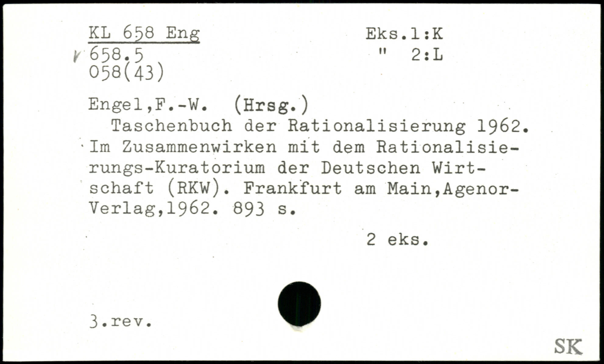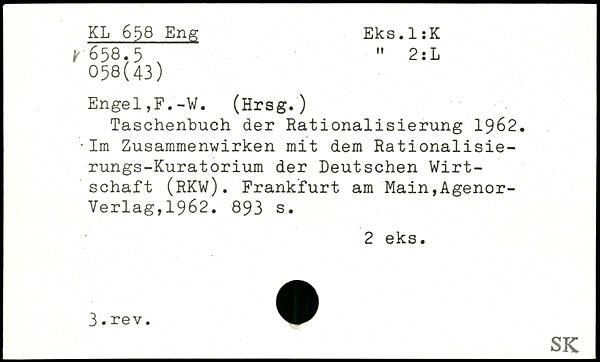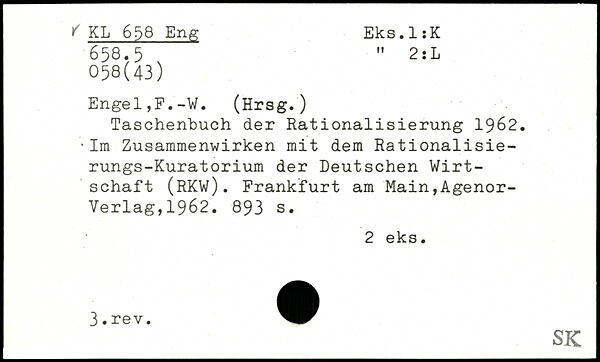 Taschenbuch der Rationalisierung 1962. 'Im Zusammenwirken mit dem Rationalisierungs-Kuratorium der Deutschen Wirtschaft (RKW).