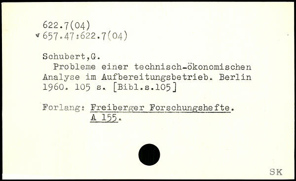Probleme einer technisch-ökonomischen Analyse im Aufbereitungsbetrieb.