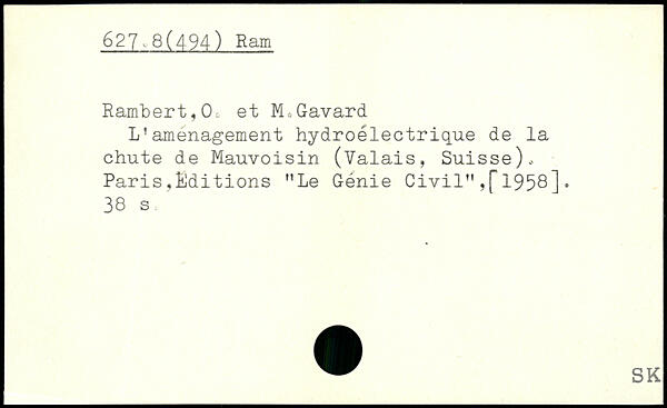 L!amenagement hydroélectrique de la chute de Mauvoisin (Valais, Suisse) Paris ,Éditions "Le Génie Civil" ,[" 1958].