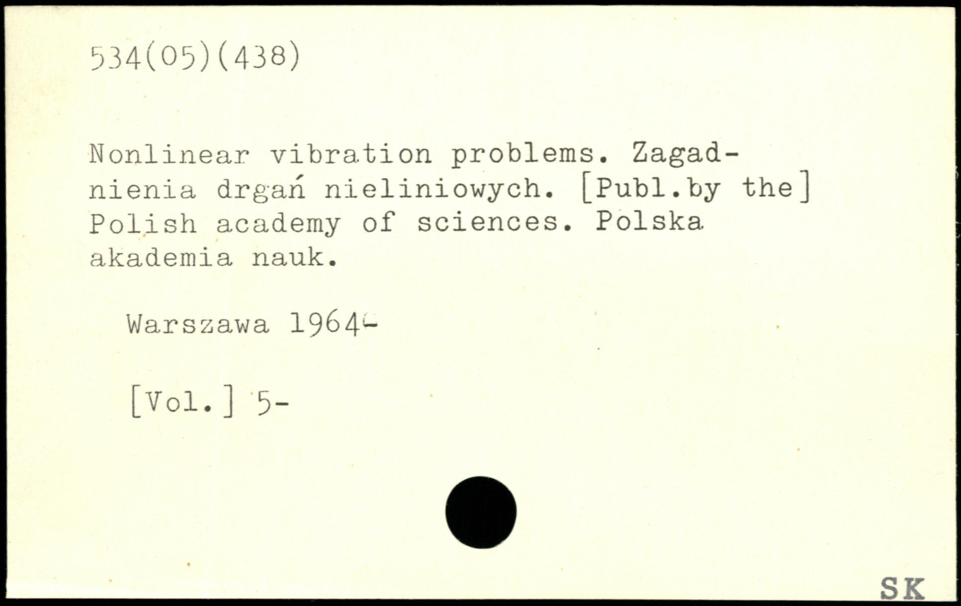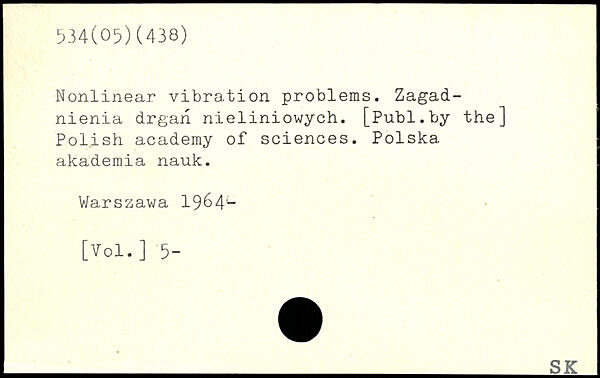 Nonlinear vibration problems. Zagad-nienia drgan nieliniowych. [Pu.bl.by the] Polish academy of sciences. Polska akademia nauk.