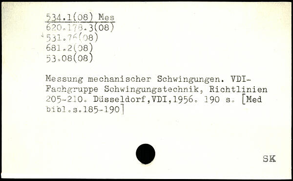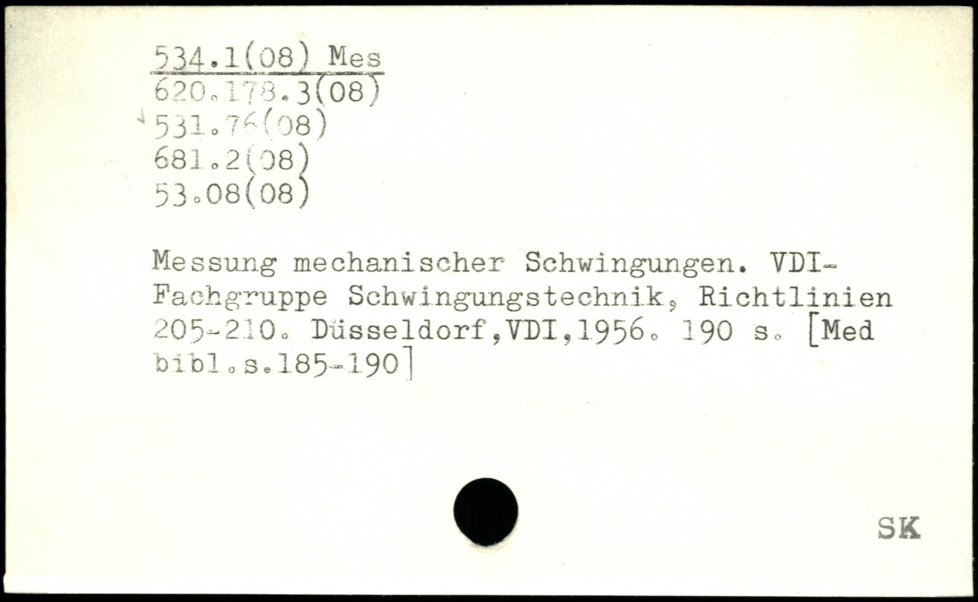 Messung mechanischer Schwingungen. VDI-Fachgruppe Schwingungstechnik? Richtlinien 205-210o
