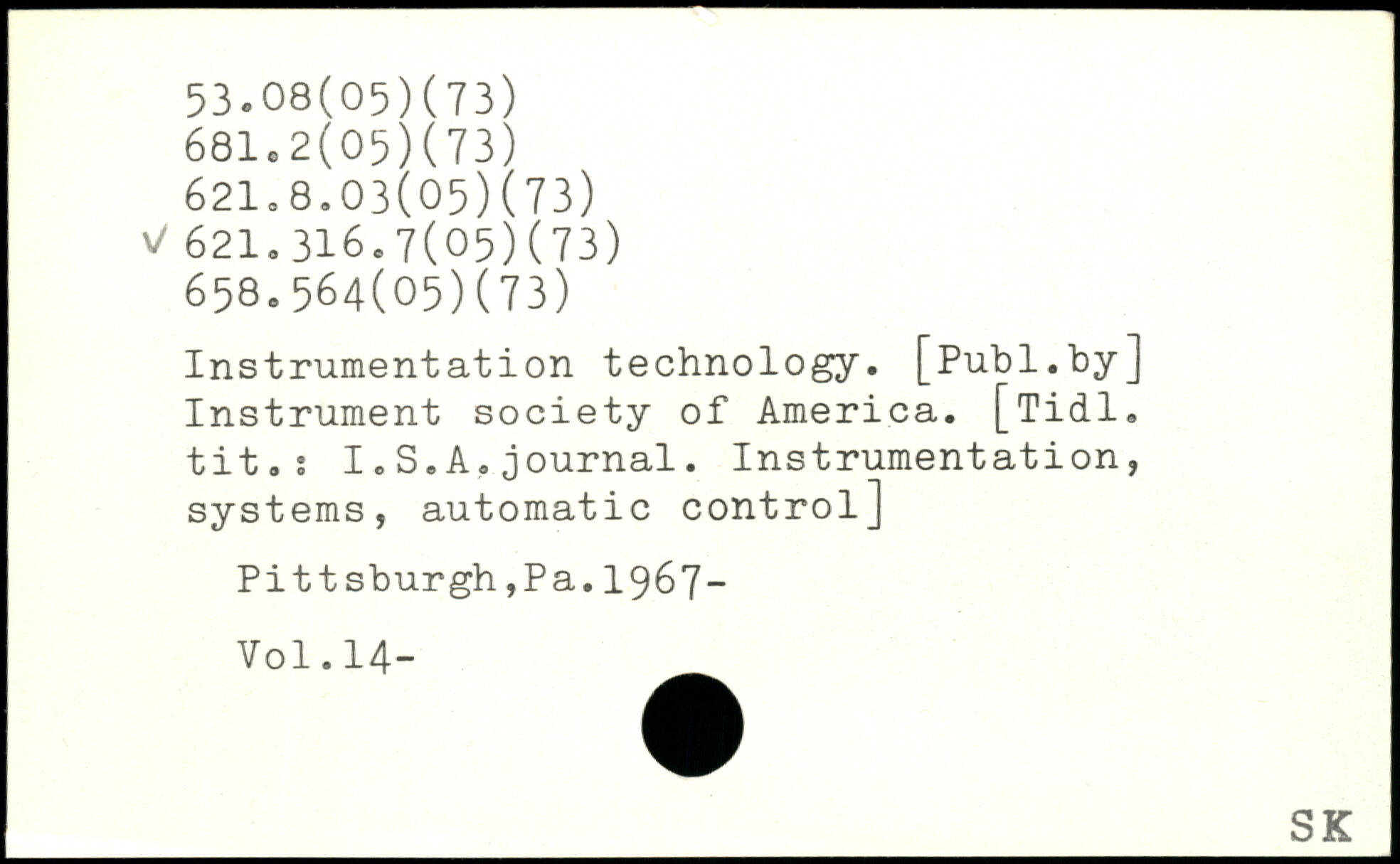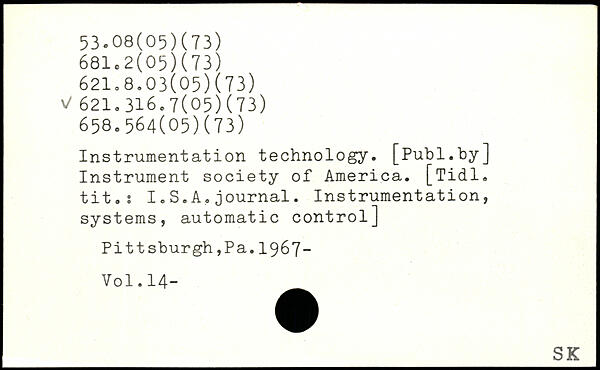 Instrumentation technology. [Publ.hy] Instrument society of America.