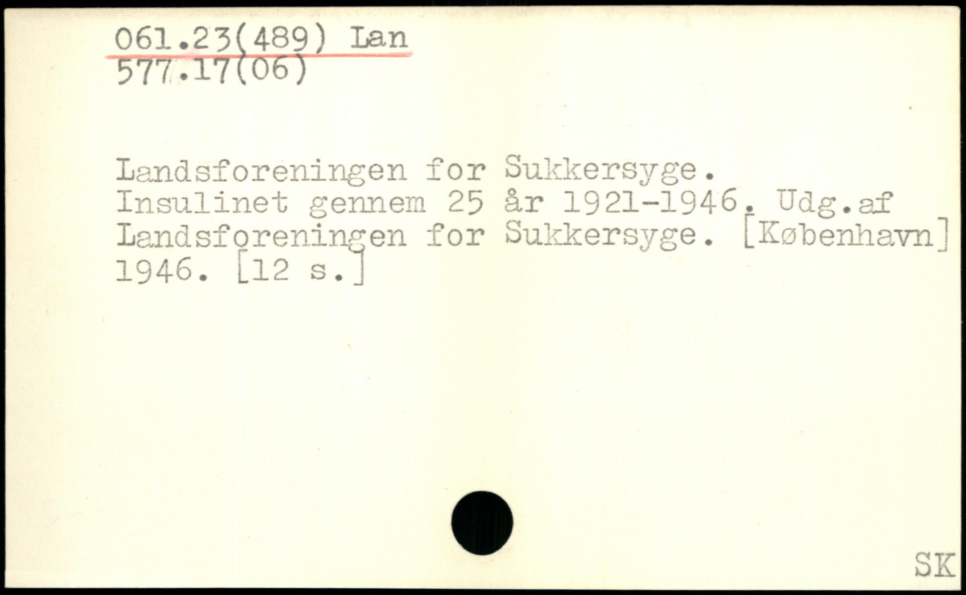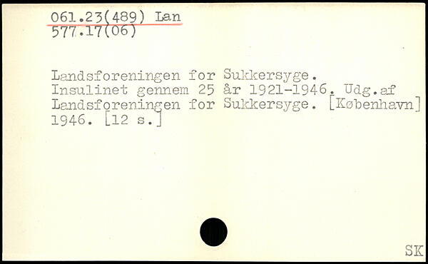 landsforeningen for Sukkersyge. Insulinet gennem 25 år 1921-1946. Udg.af Landsforeningen for Sukkersyge.