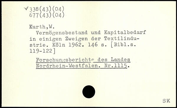 Vermögensbestand und Kapitalbedarf in einigen Zweigen der Textilindustrie.