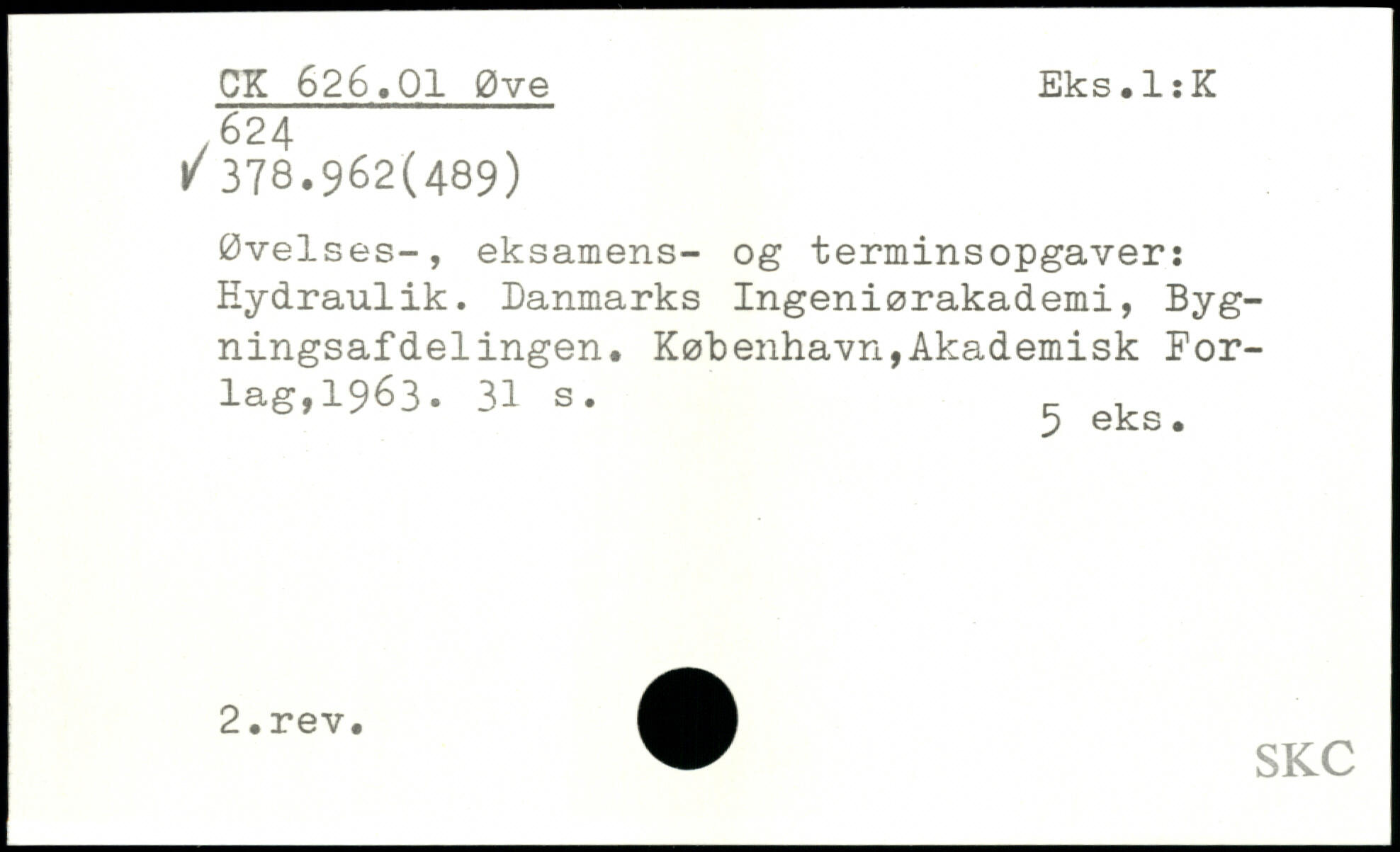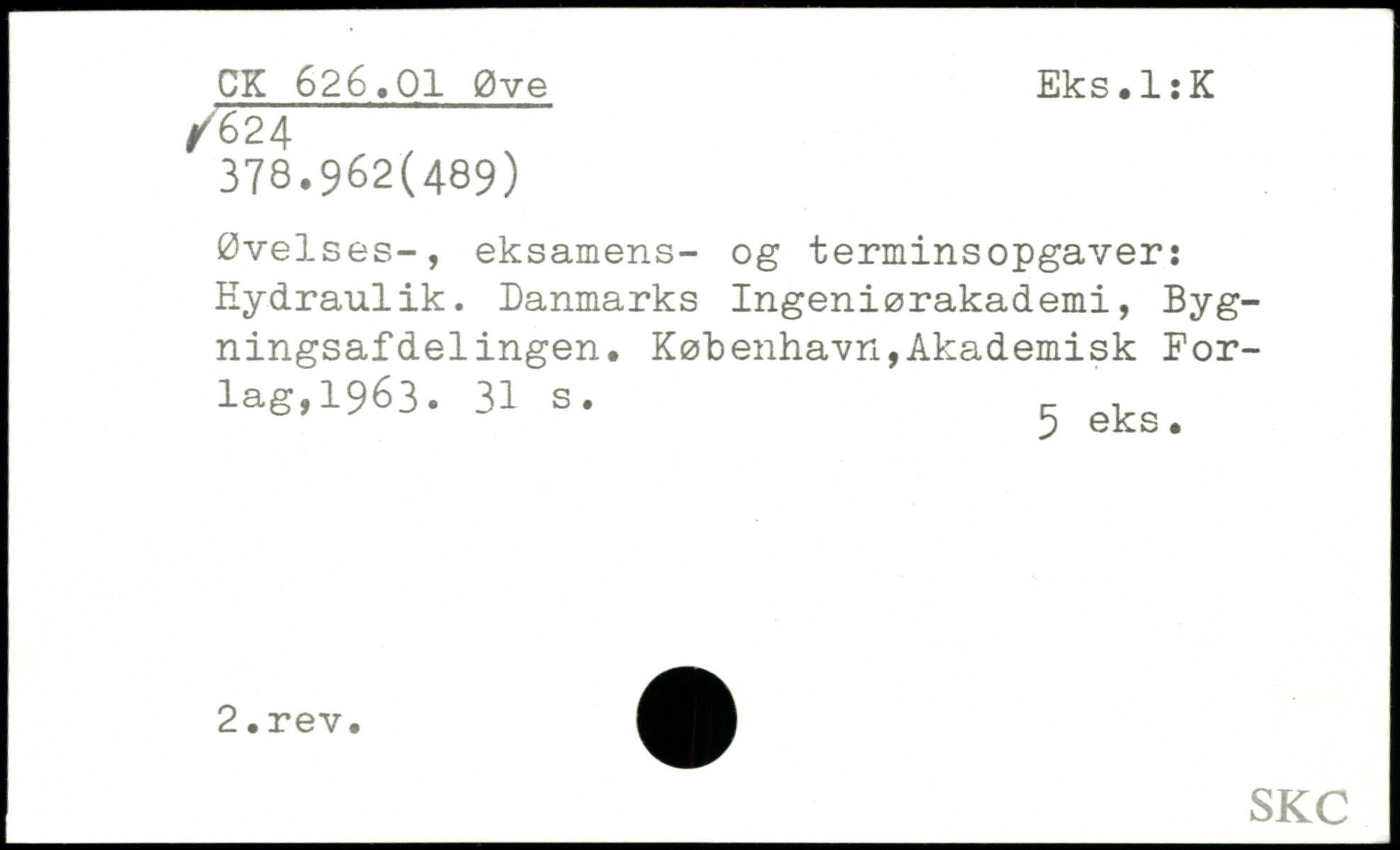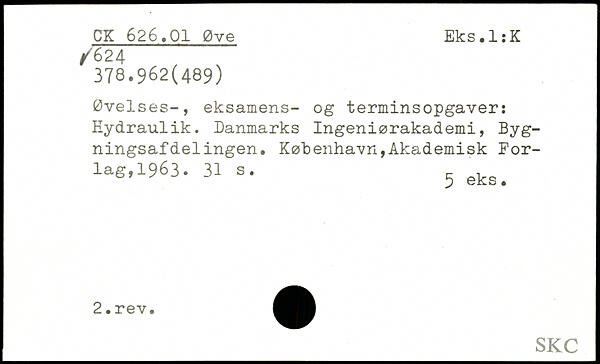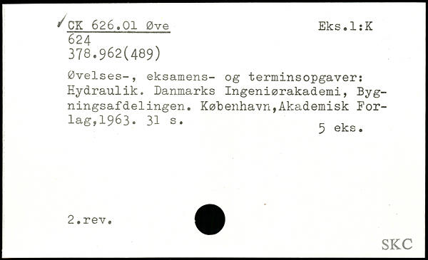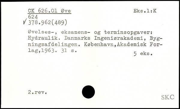 Øvelses-, eksamens- og terminsopgaver: Hydraulik. Danmarks Ingeniørakademi, Bygningsafdelingen.